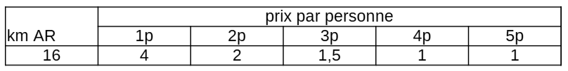 Voir ci-dessous tarif covoiturage