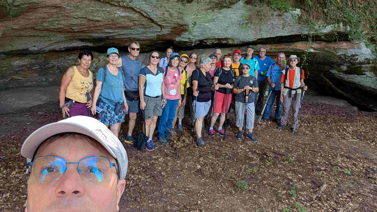 De nombreuses pauses ont ponctué la sortie : aux anciennes carrières de grès, devant la statue de Sainte Catherine, à la grotte des lépreux ou encore à l’ouvrage de l’Einseling… Animateur Jean Philippe