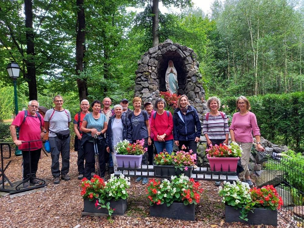 Pas de pluie pour les 14 marcheurs qui ont participé à la randonnée de 11 km sur les sentiers forestiers de Creutzwald. Quelques arrêts, notamment à la Villa Notre-Dame de la Clairière (ancienne demeure des directeurs de la Houve), de la grotte de Lourdes et au Katzeneiche (chêne aux chats)….. Animateurs : Dominique et Georges