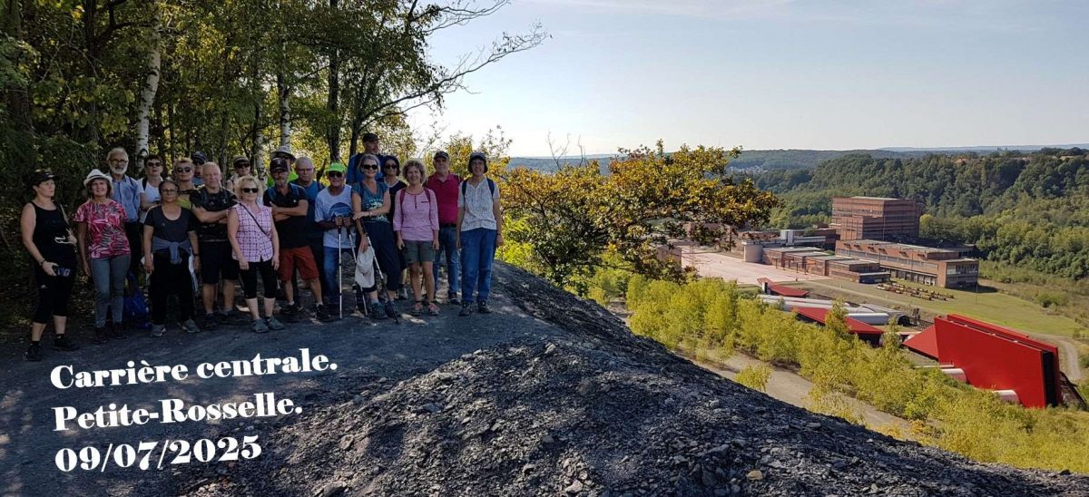 23 randonneurs ont profité du superbe temps de ce dimanche de septembre pour marcher de Morsbach à Petite-Rosselle en passant sur le retour par Emmersweiler à travers prés, forêts, et aussi du macadam (Il en faut pour tous les goûts). Nadine et Francis, qui guidaient cette marche d’un peu plus de 14 km, ont permis aux participants qui ne connaissaient pas le site de découvrir notamment à la carrière centrale de Petite-Rosselle une superbe vue sur le carreau Wendel et le musée de la mine, en un mot le Parc Explor Wendel. Il a fait chaud mais un petit vent agréable nous a accompagnés et des rafraîchissements étaient prévus à l’arrivée du parcours.