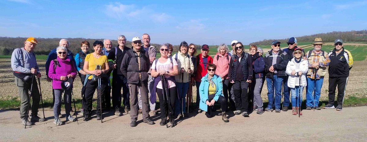 Par un bel après-midi ensoleillé, 26 marcheurs ont parcouru 10 kilomètres autour de Valmont. Animateurs Dominique et Gérard.